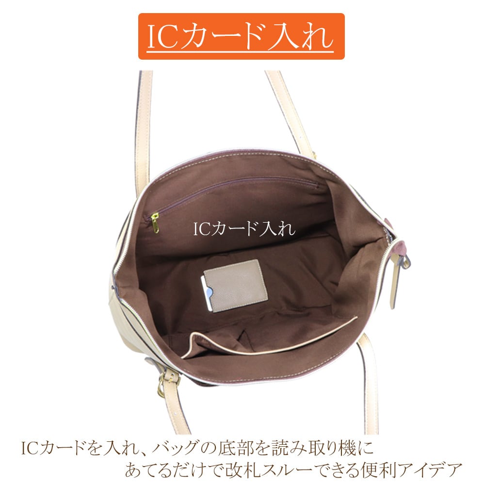 本体内側底部には交通系ICカード入れがありバッグのまま改札スルー。この価格でハイクオリティを感じて頂ける一品です。